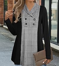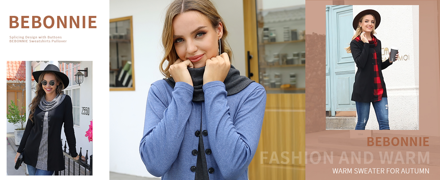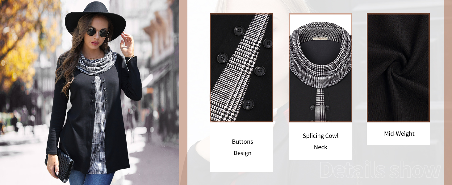 - Design Features: Use 2 Different Colors Splicing Looks Like a Fake Cardigan with Buttons/Cowl Neck/ NO Pocket/ A Line.