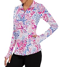 - [Regular Fit Athletic Running Top for Women] As sport apparel, the stand up collar and three quarter sleeve design of this ladies dry fit polo shirts gives you more skin protection and protects you from sunburn during exercise. Raglan sleeve also provide a free movement for arms. The zipper can be fixed and will not interfere with your exercise